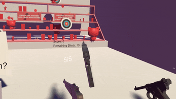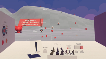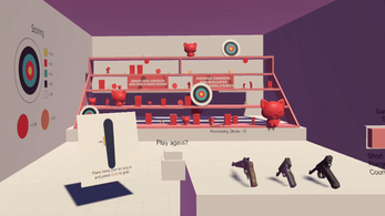 A target shooting simulation featuring two sets of guns and targets for short-range and long-range plinking.
